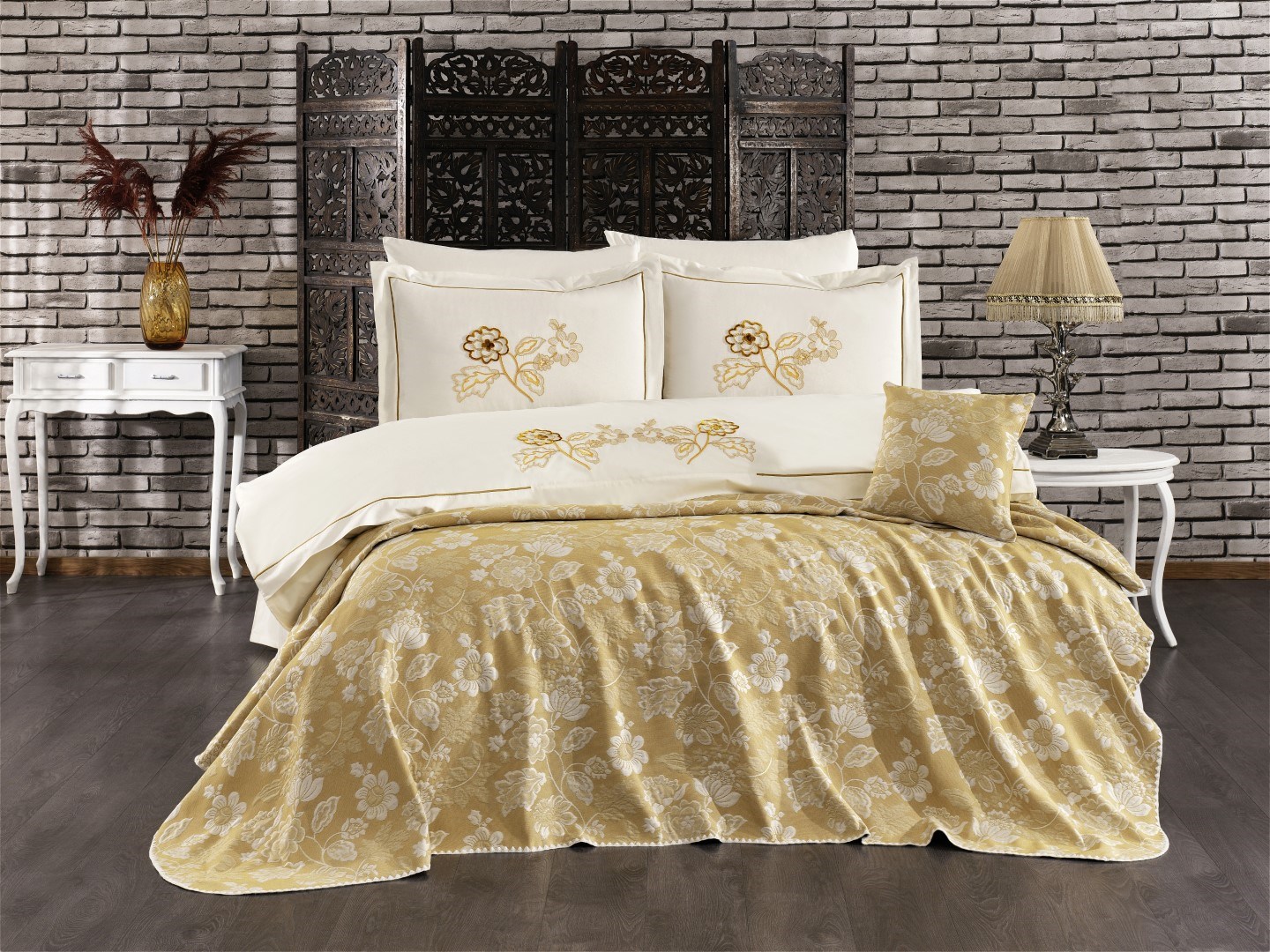 İpekçe Alida 8 Parça Çift Kişilik Lüks Çeyiz Seti - Hardal (CZ.CST.0001.0273.000002)
