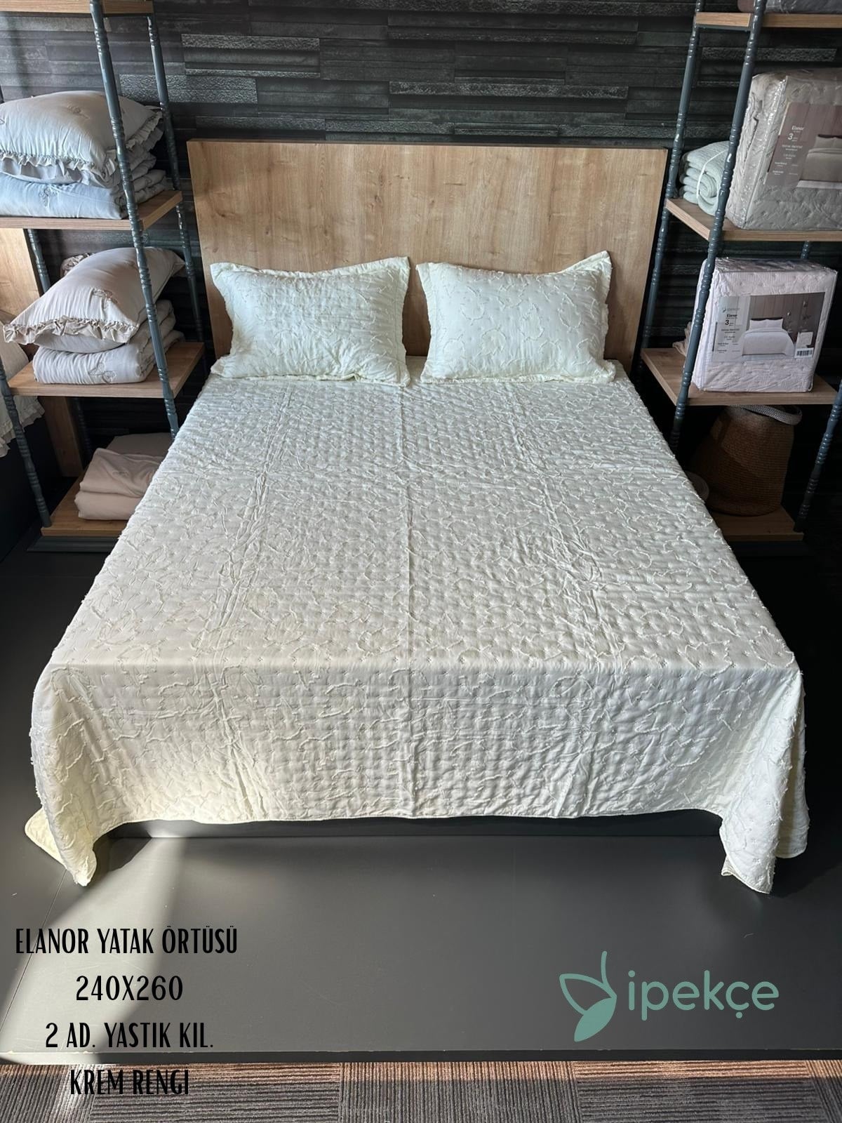 İpekçe Elanor 3 Parça Çift Kişilik Yatak Örtüsü Seti - Krem Modern Dokulu ve Şık Yatak Örtüsü (YO.YTO.0001.0169.000003)