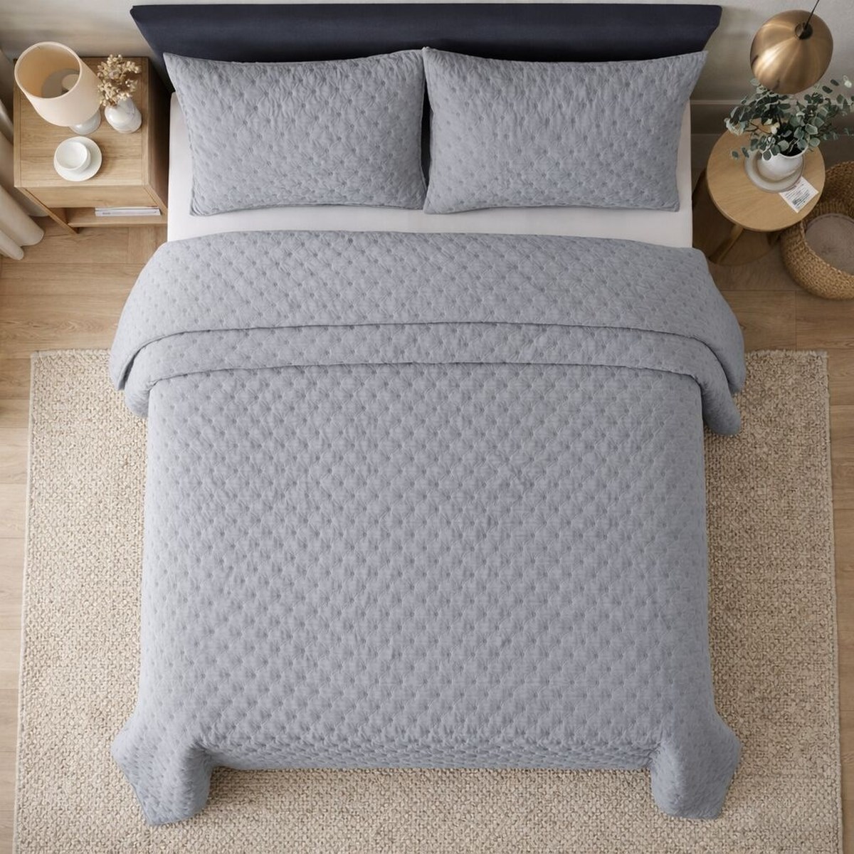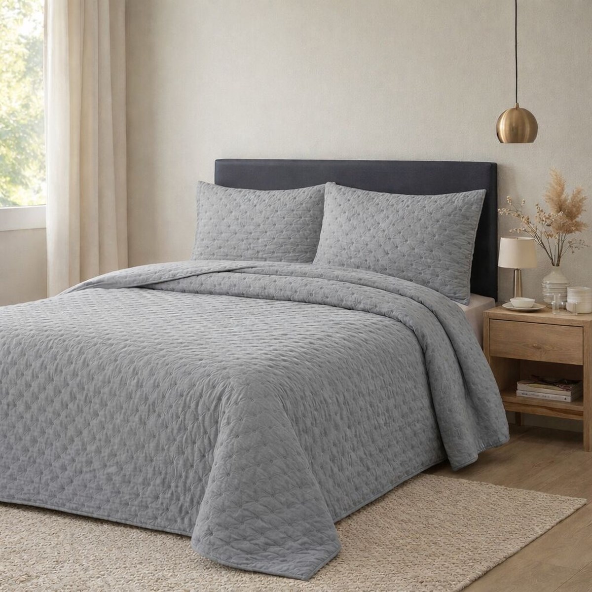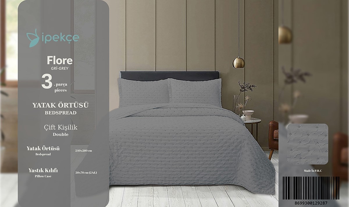 İpekçe Flore 3 Parça Çift Kişilik Yatak Örtüsü Seti - Gri Modern Dokulu ve Şık Yatak Örtüsü (YO.YTO.0001.0170.000001)