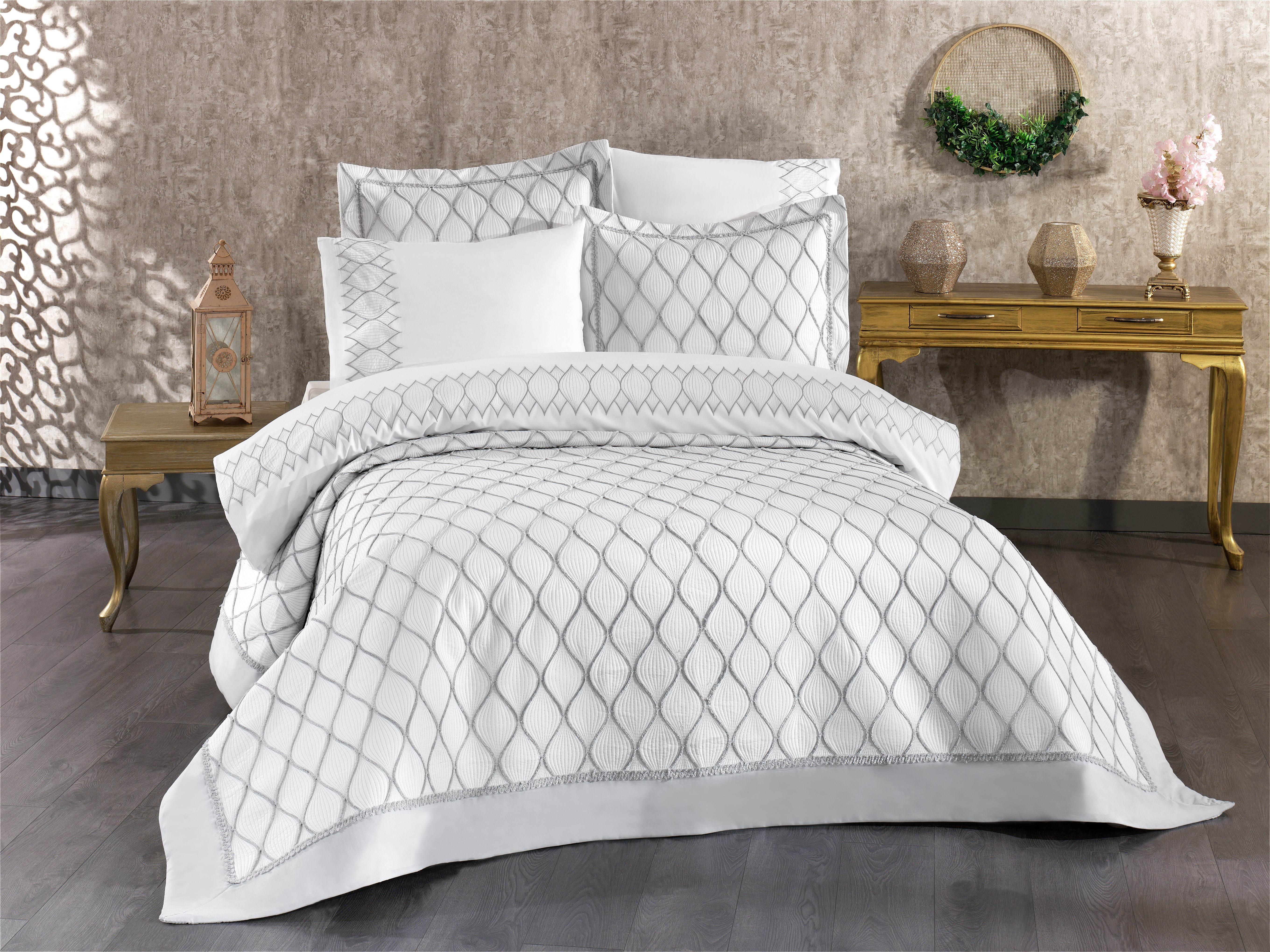 İpekçe Mikro Levissa 7 Parça Çift Kişilik Lüks Çeyiz Seti - Gri (CZ.CST.0001.0274.000001)